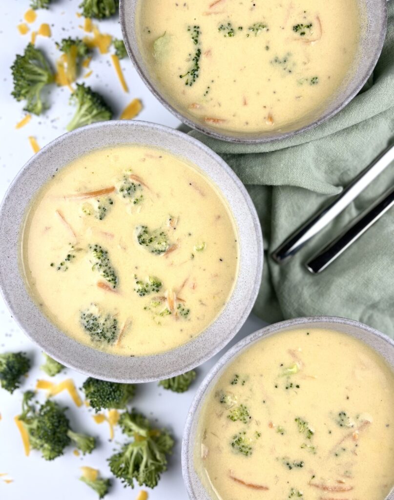 Who doesn’t love comfort food? Today is the PERFECT opportunity to try our easy, nourishing, and delicious Broccoli Cheddar soup! It’s packed with veggies, warming, and feels rich – without actually being heavy. Make a big batch to kick off the week, helping you to ensure you have meals throughout all the to-dos to come this week!