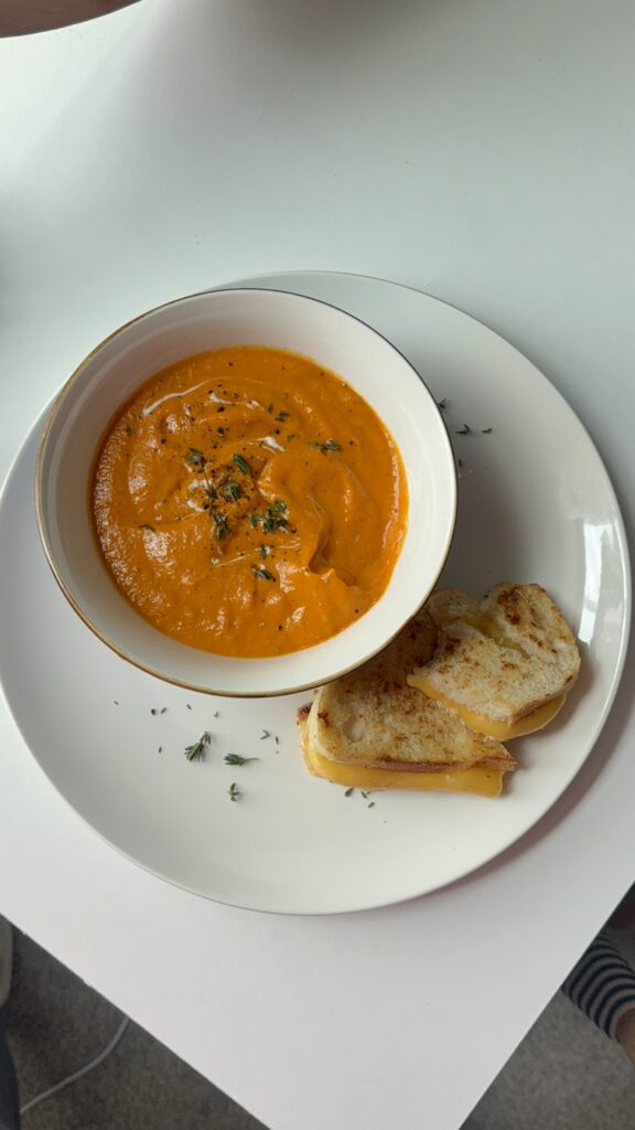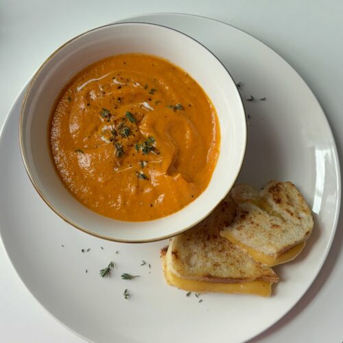 If you ever find yourself staring at a fridge full of veggies with no plan, this recipe is for you! This Roasted Red Pepper Soup is an easy, feel-good way to turn odds and ends into something cozy and delicious. Perfect on its own or paired with a classic grilled cheese or toasted baguette, it’s a simple go-to for chilly days and easy lunches.