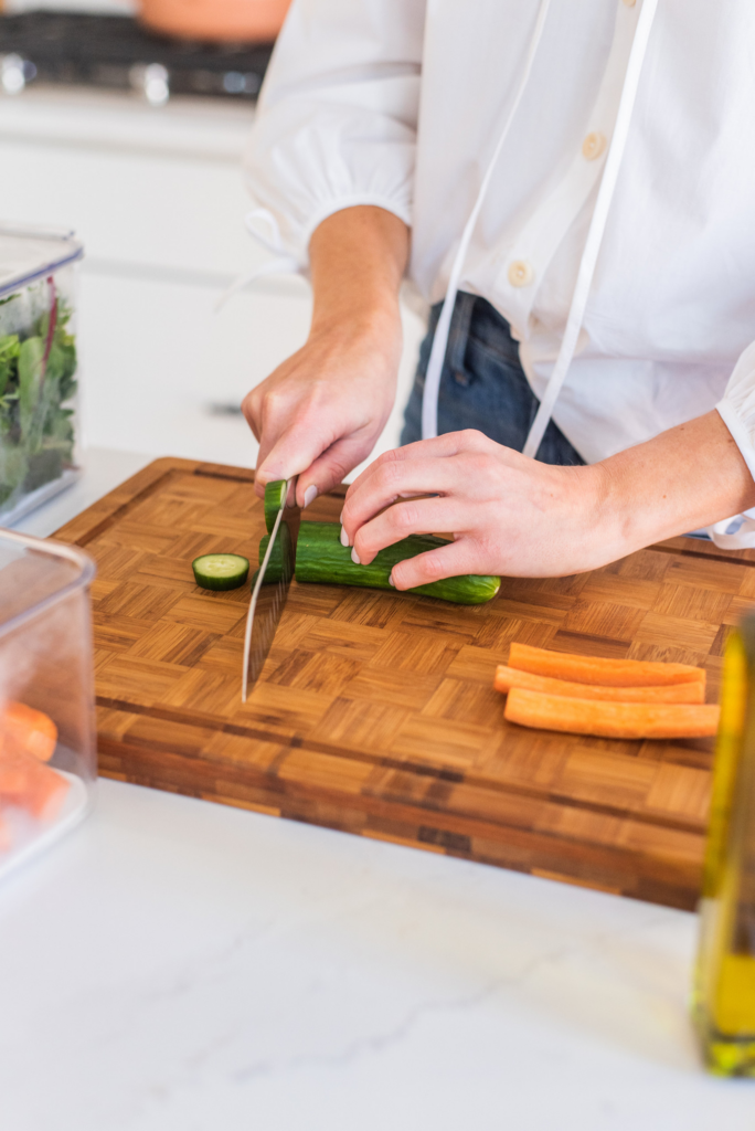 This is where weekly menu planning can really help, but not the type of rigid planning you might be thinking of. My go-to weekly planning is flexible, realistic, and actually makes life easier. Instead of taking on the week recipe by recipe, I follow a “building block” style. I make sure I have all of my pieces ready on Sunday, so that throughout the week, I can simply plug and chug – based on exactly how I’m feeling, how energized I feel, and what actually sounds good in the moment.